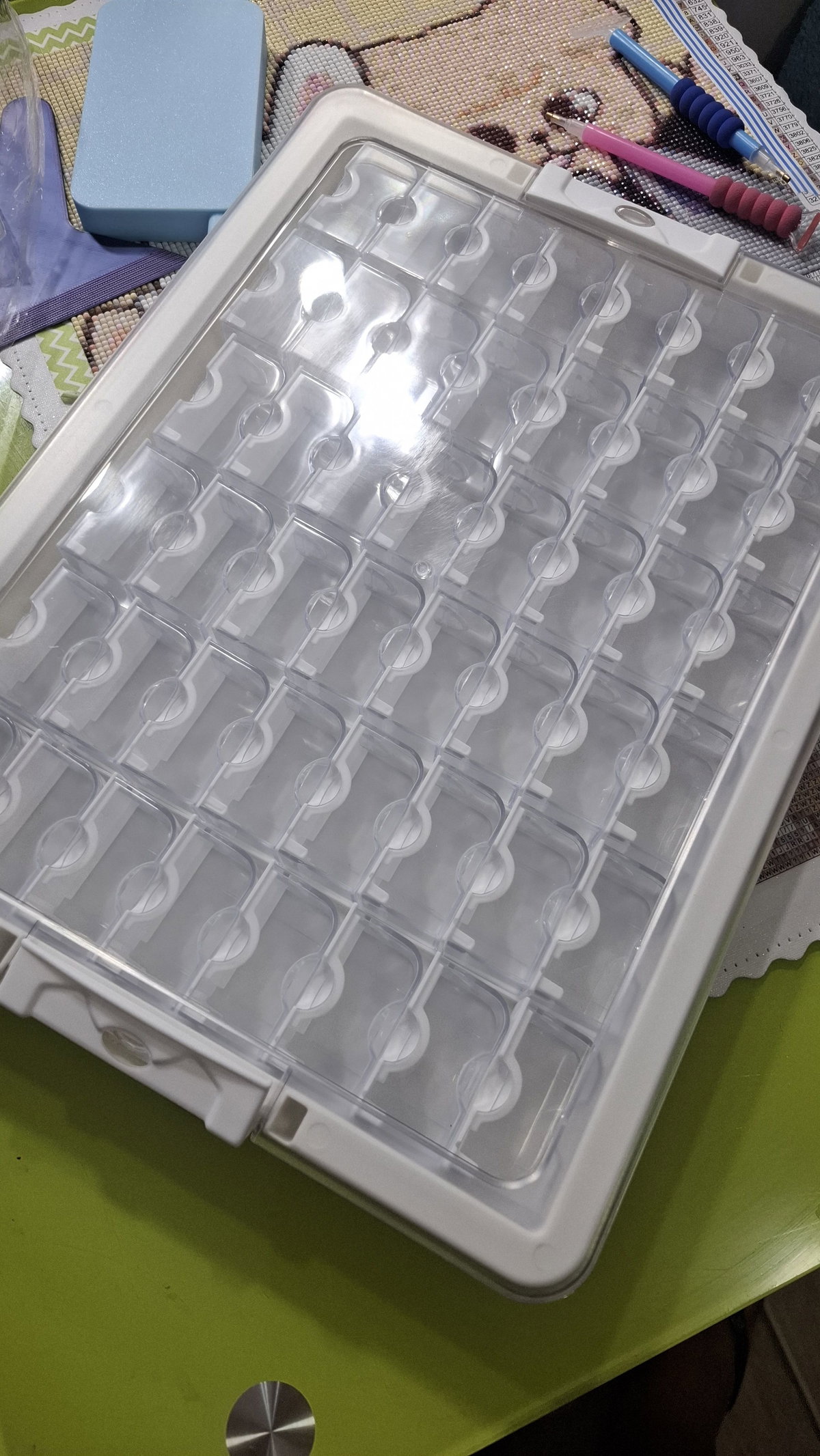 Mantén tus diamantes ordenados y al alcance con estos prácticos contenedores. Su diseño transparente y tapa de fácil apertura, podrás encontrar el color perfecto en segundos.