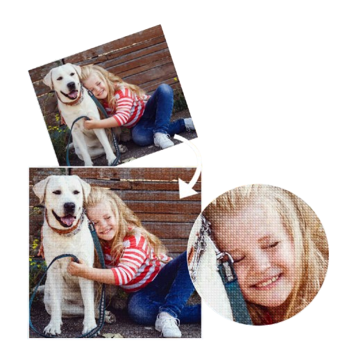 Las imagenes con rostros humanos necesitan mucho espacio para pixelearse correctamente , Si el lienzo es pequeño ( por ejemplo 30x45) no hay suficiente diamante para representar los razgos faciales con precisión. Los ojos y la boca pueden convertirse en manchas irreconocibles.